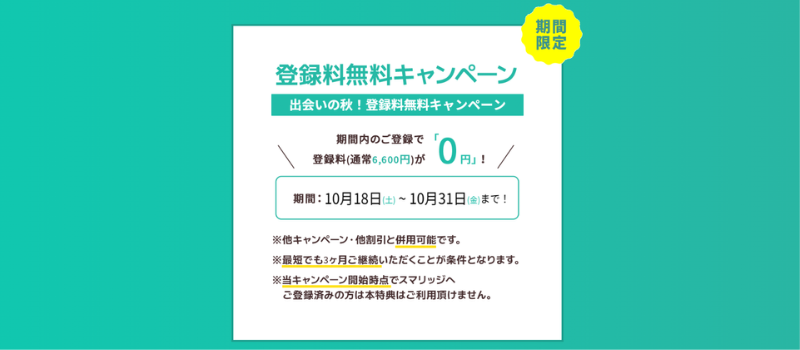 スマリッジでは、定期的に期間限定のキャンペーンが開催されています。